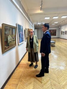 Во время визита Мейрлан Акылбекович познакомился с экспозицией, включающей произведения отечественных и зарубежных мастеров, а также с деятельностью музея по сохранению и популяризации художественного наследия региона. На сегодняшний день музей располагает богатой коллекцией, в которой представлены произведения искусства Казахстана XIX – ХХ веков, русского искусства XVIII – XX веков, Европейского искусства XVII –XX веков. В ходе встречи обсуждались вопросы развития музейного дела и реализации культурных проектов в области. Заместитель акима проявил живой интерес к экскурсии, и отметил, что коллекция производит яркое впечатление.