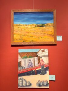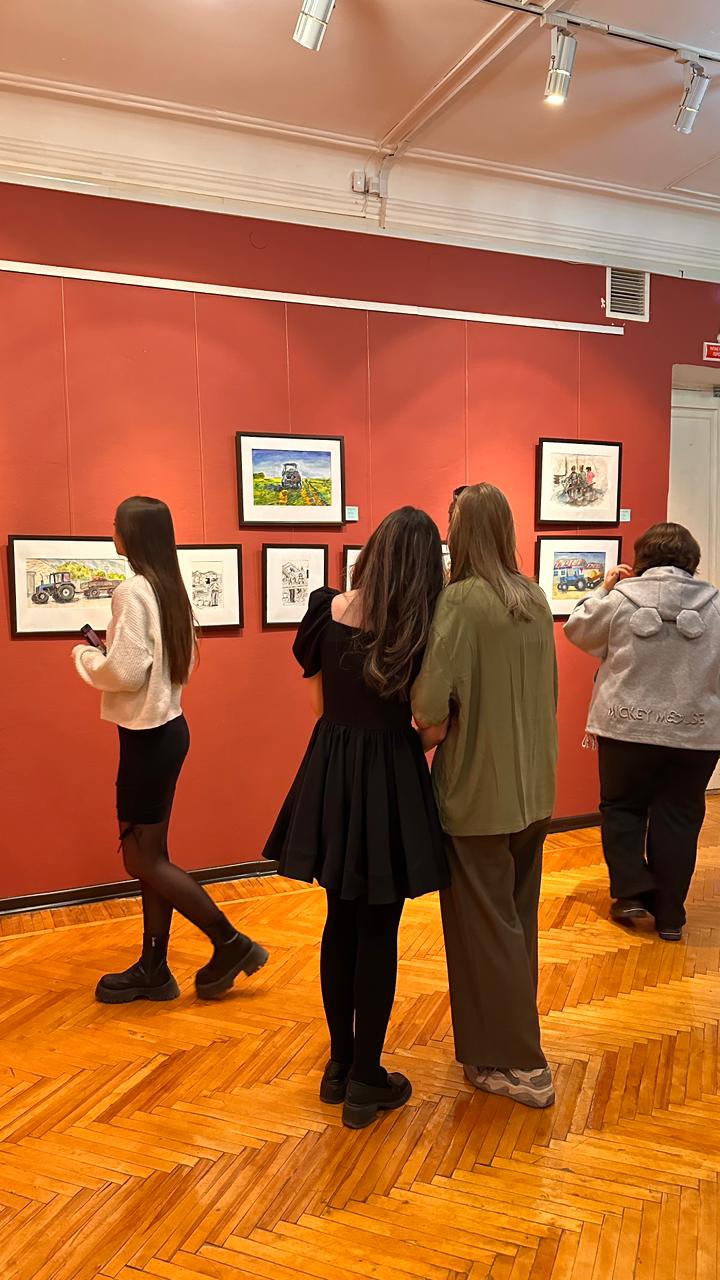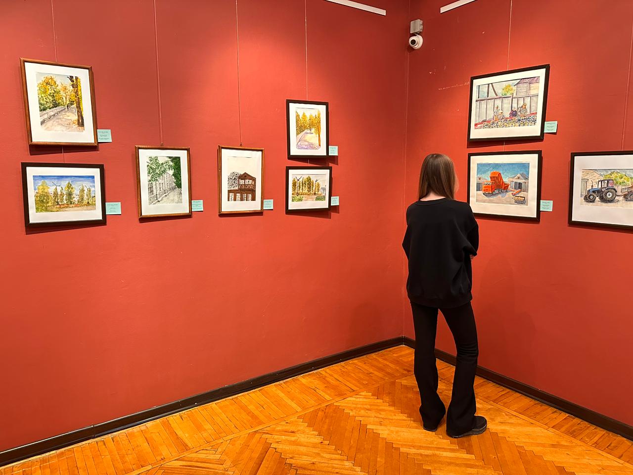 Выставка, открывшаяся в одном из залов музея, представила зрителям работы учащихся старшей и довузовской групп студии. Более двадцати произведений, выполненных маслом, гуашью, акварелью и линерами рассказывают о трудовых буднях агрофирмы. Здесь же представлены пленерные работы, выполненные ранее в окрестностях музея. Каждая картина, это внимательно изученная натура, момент, запечатлённый на холсте или листе бумаги. И названия у них говорящие – «Заготовка урожая», «1000 и одна картошка», «Тишина после мотора».