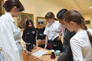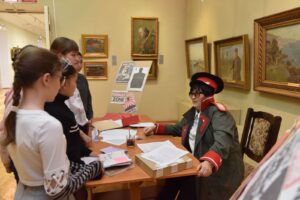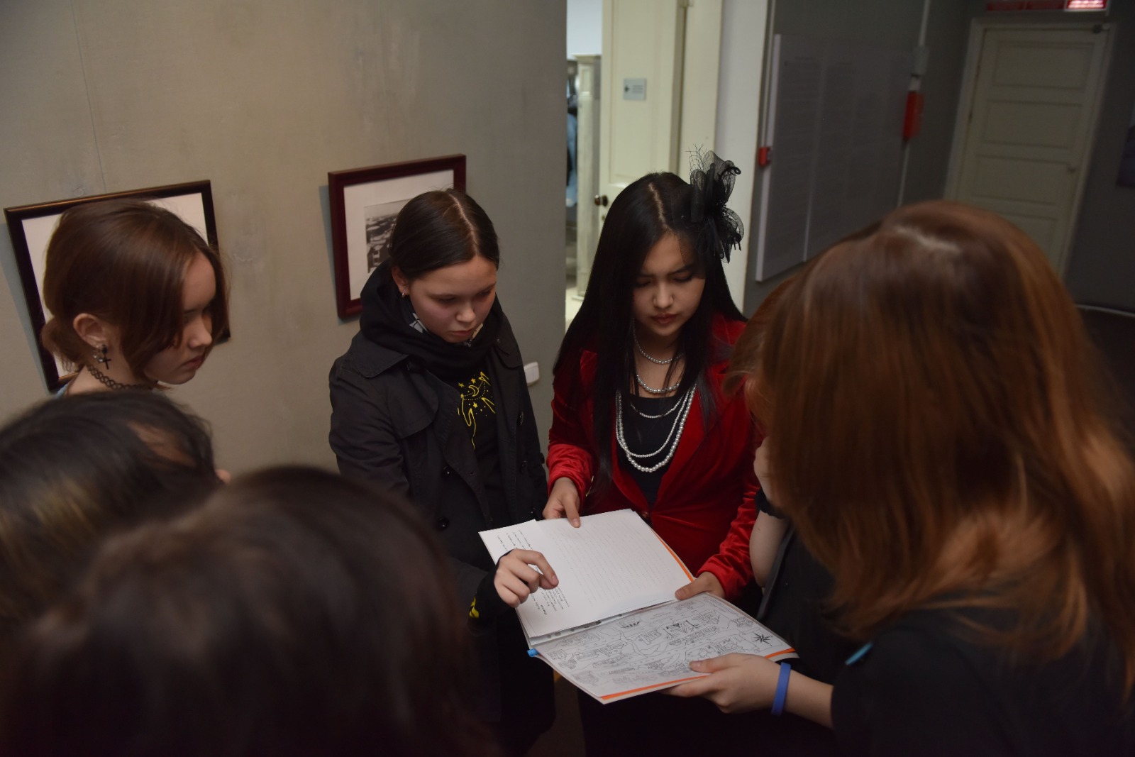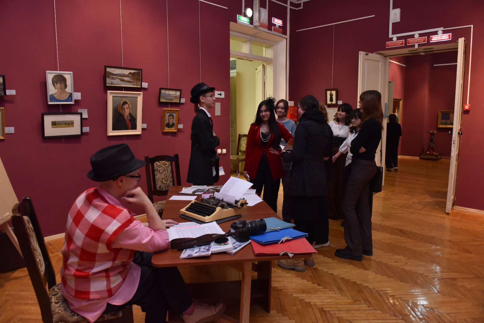 Но, наконец, все преступники пойманы, а юные сыщики идут… в зал. В большой зал со сценой и стульями, где пройдёт посвящение в студийцы, ведь вся история с привидением, похищениями и подменой картины – это спектакль, разыгранный сотрудниками Областного музея имени семьи Невзоровых для учащихся детской художественной студии. Шевцова Анна Анатольевна, Ашханова Назым Серхановна, Шинжина Лаура Вахаевна, Стопычева Ксения Юрьевна, Неделькина Наталия Сергеевна, Сивашова Юлия Валерьевна, Неудачина Ольга Андреевна, Шестакова Лариса Алексеевна, а также молодые актрисы из детской театральной студии «Четвёртая стена» Добрынина Таира и Мухаметқан Амира и учащиеся старших групп студии подарили новоприбывшим студийцам этот замечательный праздник – увлекательное расследование, приключение, и массу впечатлений.