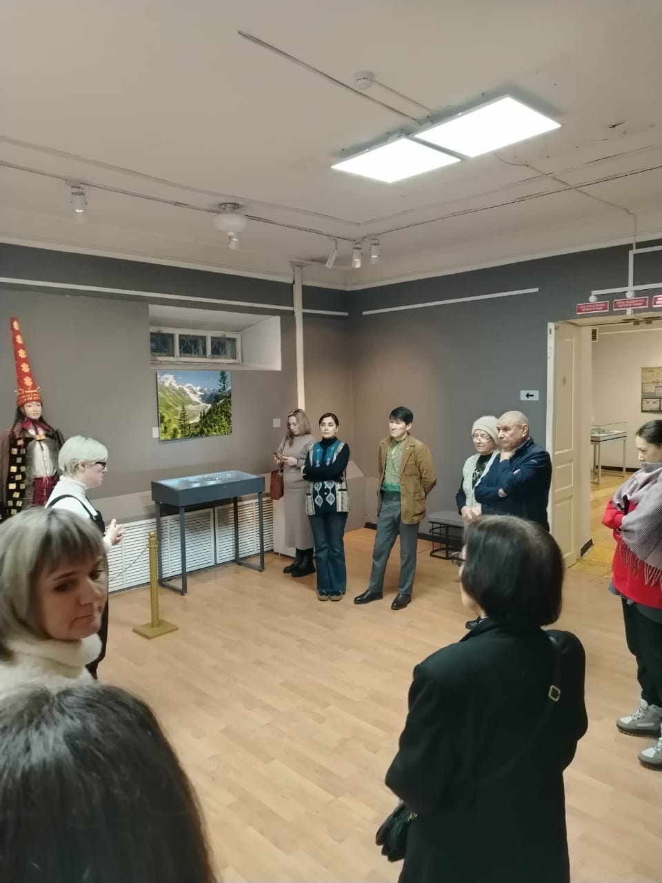 Продолжением встречи стала экскурсия по выставке «Золото Великой Степи», которую провела младший научный сотрудник музея Ю.В. Сивашова. Уникальные золотые артефакты из Берельских курганов и курганов Елеке-Сазы – экспонаты, которым более двух тысяч лет, реконструкции образов древних людей и лошадей погрузили слушателей в глубокую древность, позволили почти осязаемо прикоснуться к родной истории и вызвали настоящее восхищение: