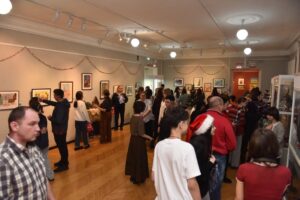 За окном вьюга и метель. Снежинки сыплются на землю, словно кто-то на небе решил испечь снежный пирог, и просеивает снег через небесное сито. Прохожие кутаются и спешат укрыться в помещении, а дети весело бегают и кидаются снежками. Радостный детский смех сегодня звучит и в залах музея. Это открывается выставка. В Областном музее изобразительных искусств имени семьи Невзоровых мерцают вихри декабря в детских рисунках, новогодних масках, ёлочных игрушках и бумажных диорамах. Акварель, гуашь, масло, монотипия, линеры, войлок и глина, бумага и картон – в руках талантливых ребят любой материал превращается в сказку. И встречаются зрителям «Волшебная ночь», и «Зимние забавы», приходит из сказки «Морозко», и звучит «Потерянный плач ангела».