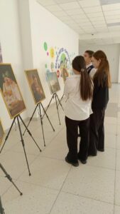 Очередная такая выездная выставка состоялась в ГУ СОШ № 50, где музей принял участие в мероприятиях, проходивших в рамках школьной недели русского языка и литературы. Сотрудники музея, Абешова Ж.Ж и Сивашова Ю.В. рассказали учащимся средней школы о произведениях русских художниках XVIII – XX веков и представили им факсимильные репродукции произведений, хранящихся в коллекции. Полотна А. Боголюбова, К. Брюллова, И. Левитана, И. Шишкина, и многих, многих других крупных мастеров, определивших лицо русского искусства в разные периоды его развития, оригиналы которых хранятся в музее, не все и не всегда могут увидеть вживую. Темп и загруженность современной жизни не оставляет, порой, места для посещения музея. В этих условиях выездная выставка факсимильных копий – отличная возможность привести искусство в школу, сделать его ближе и охватить максимально количество зрителей.