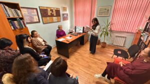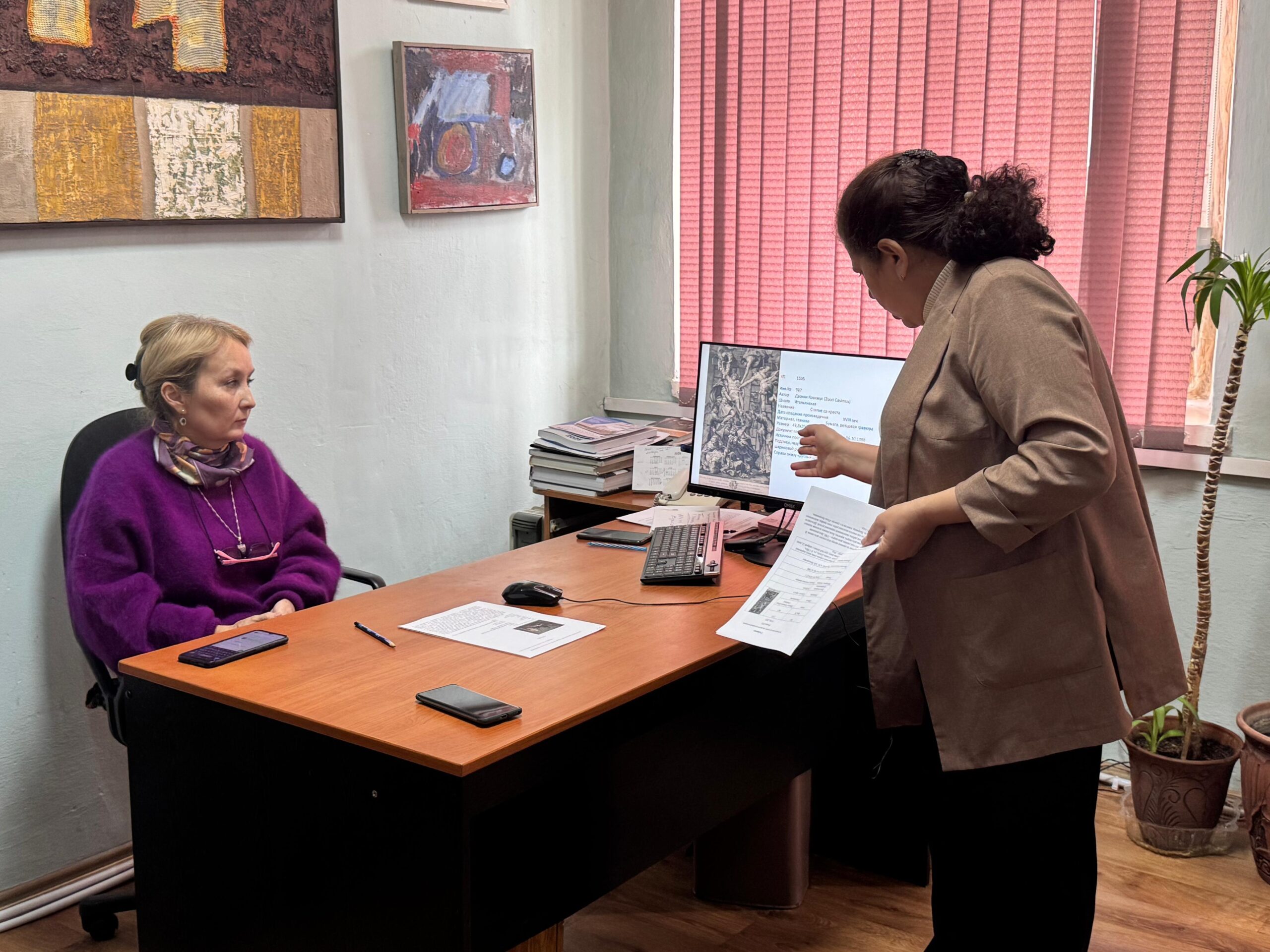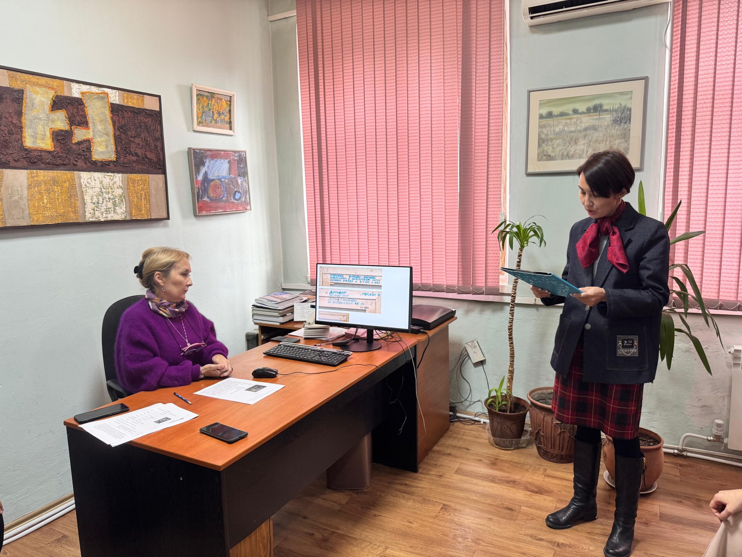 Сотрудники научного отдела не только занимаются поиском информации и атрибуцией произведений, но и составляют научные описания экспонатов музея. Это очень помогает при составлении экскурсий, и расширяет понимание зрителями художественных произведений. Такие научные описания были зачитаны и на последнем методсовете. Специалист научно-исследовательского отдела Сарсембина Г.Ж. представила слушателям научное описание картины «Наездники в Жагарском парке конного завода». художника Гурскиса В. А., а младший научный сотрудник того же отдела Оразжанова А. Ш. зачитала описание произведения К.И. Рудакова. «Обнаженная».