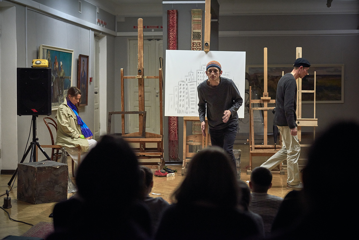 «Фуга муравья». В музее спектакль, в нескольких этюдах и словах. О суете, пожирающей время… Один из этюдов — на песню Цоя, созданный и воплощенный в экспозиции музея талантливыми людьми: Андреем Глушковым, Анастасией Малицкой, Иваном Семеновым, Андреем Жигулевым. Среди картин, мы ощущали того, кто сказал – «Скоро кончится лето … и так уйдут за годом год, так и жизнь пройдет. И в сотый раз маслом вниз упадет бутерброд».
