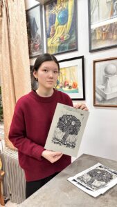 Учащиеся детской художественной студии музея в феврале месяце отправили на этот конкурс свои графические произведения, выполненные в технике линогравюры. Семь ребят из старшей и довузовской групп попытали счастье, представив на конкурс своё творчество, а работы Корниенко Богданы и Одарченко Анастасии были представлены на итоговой выставке. Эти девушки, вместе с преподавателем, Неудачиной Ольгой Андреевной, были отмечены дипломами, и получили в подарок каталоги биеннале, которые пришли в музей в октябре.