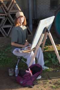 «Приречное ауылындағы пленэрде біз техника мен адамдарды салдық, бұл өте қызықты болды. Мен қозғалысты және пішінді қалай беру керектігі туралы көп нәрсе білдім. Бұл мен үшін үлкен тәжірибе болды!»