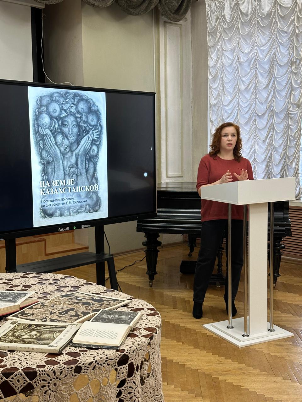 Кездесуді көрменің кураторы, музейдің ғылыми қызметкері Анна Анатольевна Шевцова жүргізді. Ол презентация көмегімен суретшінің өмірі мен шығармашылық жолы туралы әсерлі әңгімеледі — Н.И. Фешин атындағы Қазан көркемсурет училищесінде, Ригада және И. Е. Репин атындағы Ленинград институтында алған білімі жайында айтты. Тағдыр жолы мен Гүлфайрус Ысмайыловаға деген мәңгілік махаббат Евгений Сидоркинді Қазақстанға жетелеп әкелді. Осы жерден ол өзіне сарқылмас шабыт, кең тынысты өнердің рухын тапты. Уақыт өте келе Сидоркин тек шебер суретші емес, қазақ бейнелеу өнерінің болмысын айшықтап, оның келбетін сомдаған дара тұлғаға айналды.